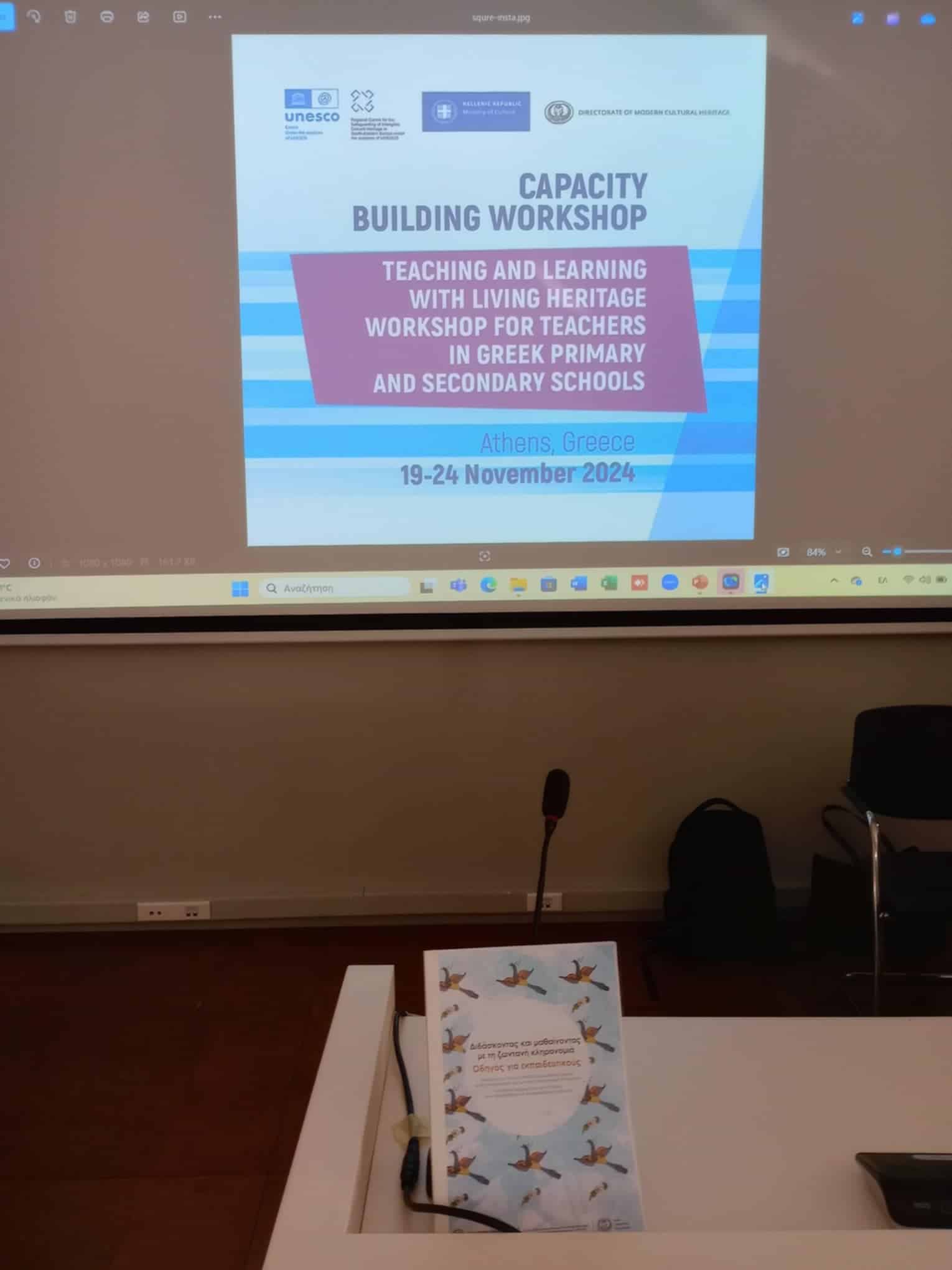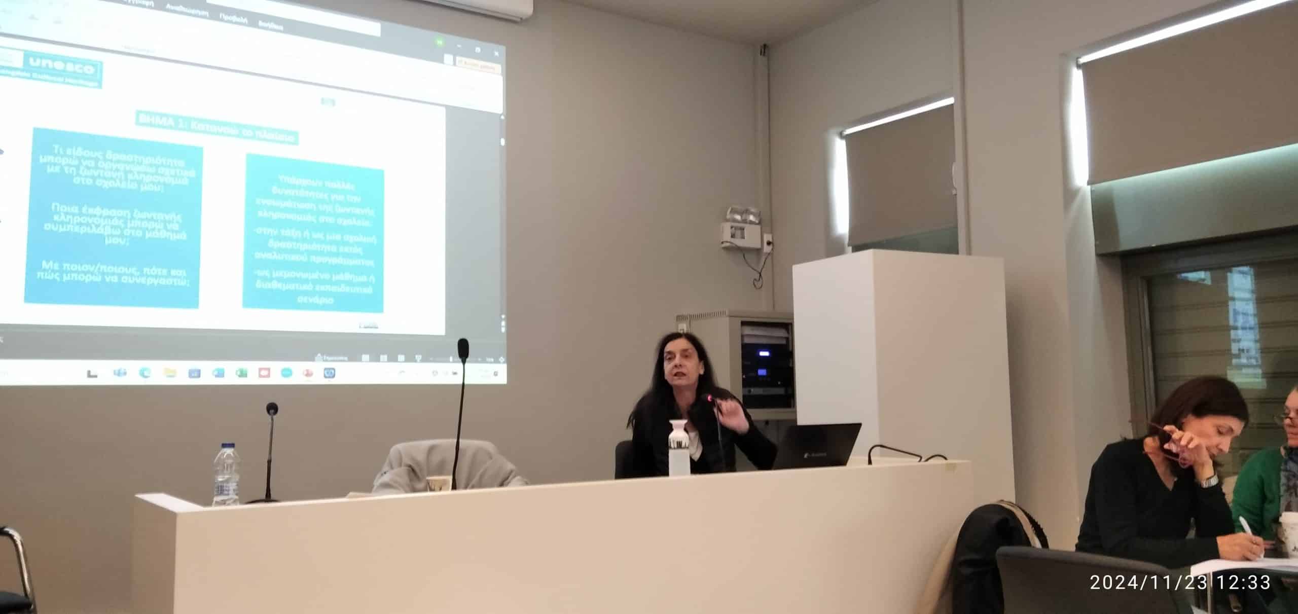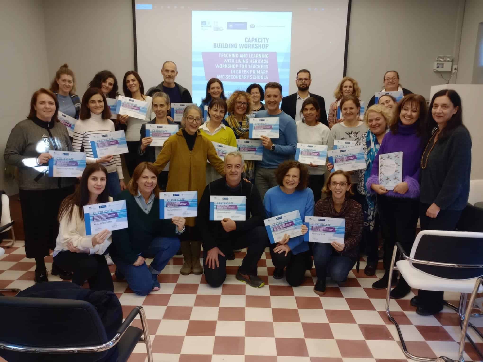 Με ιδιαίτερη επιτυχία ολοκληρώθηκε την Κυριακή 24 Νοεμβρίου 2024 το υβριδικό σεμινάριο για εκπαιδευτικούς με θέμα «Διδάσκοντας και μαθαίνοντας με τη ζωντανή κληρονομιά», που διοργανώθηκε από τη Διεύθυνση Νεότερης Πολιτιστικής Κληρονομιάς σε συνεργασία με το Περιφερειακό Κέντρο για τη Διαφύλαξη της Άυλης Πολιτιστικής Κληρονομιάς στη Νοτιοανατολική Ευρώπη, το οποίο τελεί υπό την αιγίδα της UNESCO (Regional Centre for the Safeguarding of Intangible Cultural Heritage in South-Eastern Europe under the auspices of UNESCO).