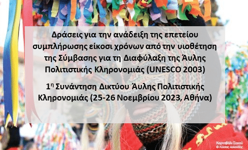 Δράσεις για την ανάδειξη της επετείου συμπλήρωσης είκοσι χρόνων από την υιοθέτηση της Σύμβασης για τη Διαφύλαξη της Άυλης Πολιτιστικής Κληρονομιάς (UNESCO 2003)