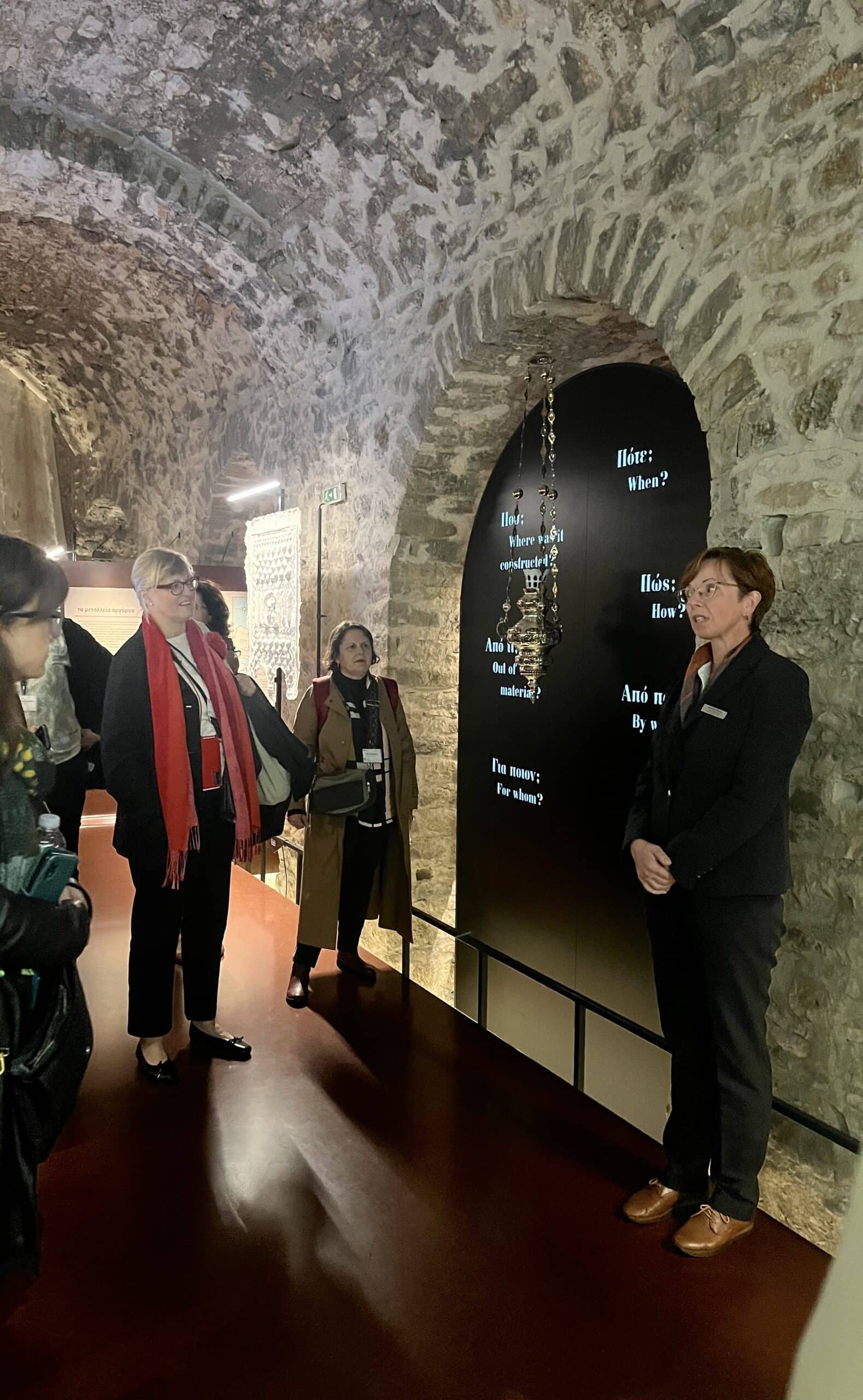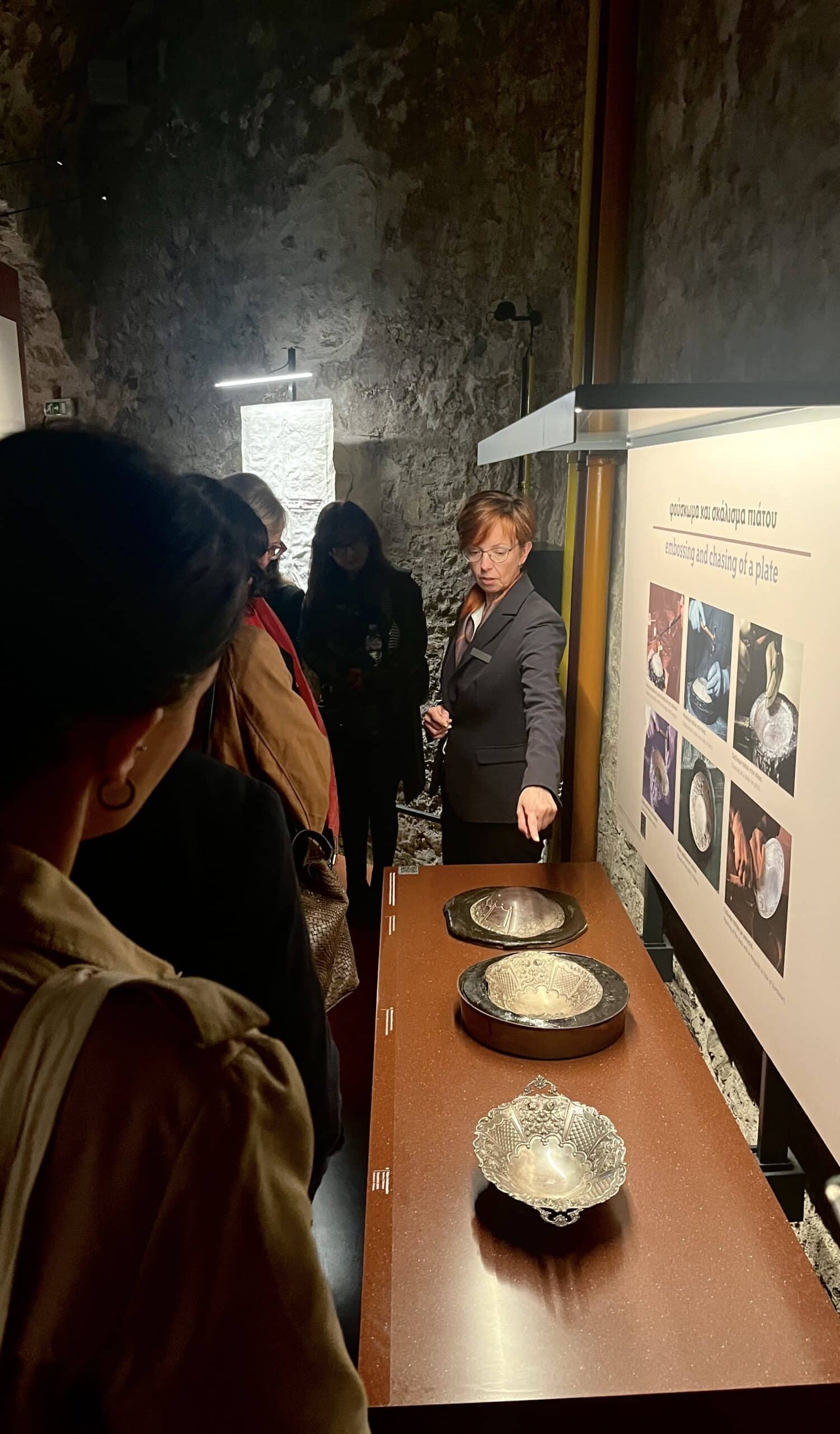 Η πρώτη ημέρα των εργασιών φιλοξενήθηκε στην Αίθουσα εκδηλώσεων «Δημήτρης Κωνστάντιος» του Βυζαντινού Μουσείου Ιωαννίνων στο Ιτς Καλέ. Παράλληλα, πραγματοποιήθηκε επίσκεψη στο Μουσείο Αργυροτεχνίας του Πολιτιστικού Ιδρύματος Ομίλου Πειραιώς, όπου η τοπική Διαχειρίστρια κ. Καλλιρόη Φωτίου, ξενάγησε τους προσκεκλημένους στις αίθουσες του Μουσείου παρουσιάζοντας το μουσειολογικό σκεπτικό για την ανάδειξη της τέχνης της αργυροτεχνίας, συστατικού στοιχείου συγκρότησης της συλλογικής μνήμης και ταυτότητας της πόλης των Ιωαννίνων. Το πρόγραμμα της πρώτης ημέρας ολοκληρώθηκε με επίσκεψη στο εργαστήρι αργυροτεχνίας της οικογένειας Βαρζώκα. Κατά την επίσκεψή τους οι εμπειρογνώμονες είχαν την ευκαιρία να γνωρίσουν από κοντά τα νεότερα μέλη της οικογένειας που συνεχίζουν την πλούσια και μακραίωνη παράδοση της αργυροτεχνίας.