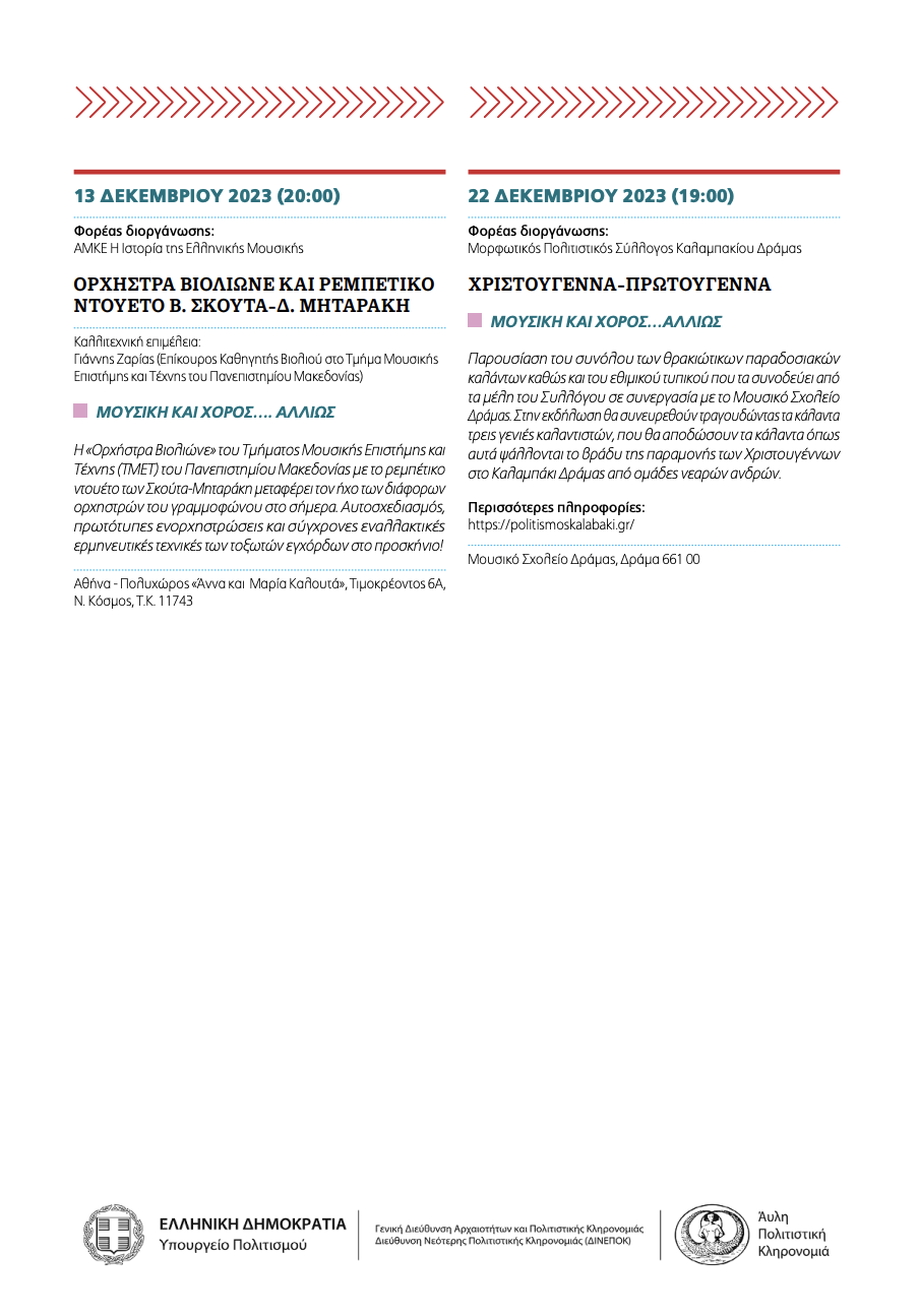 – Η Μουσική και ο Χορός… αλλιώς | Προσεγγίζοντας τη ζωντανή κληρονομιά που σχετίζεται με τη μουσική, το τραγούδι και τον χορό με τρόπο ευφάνταστο και δημιουργικό.