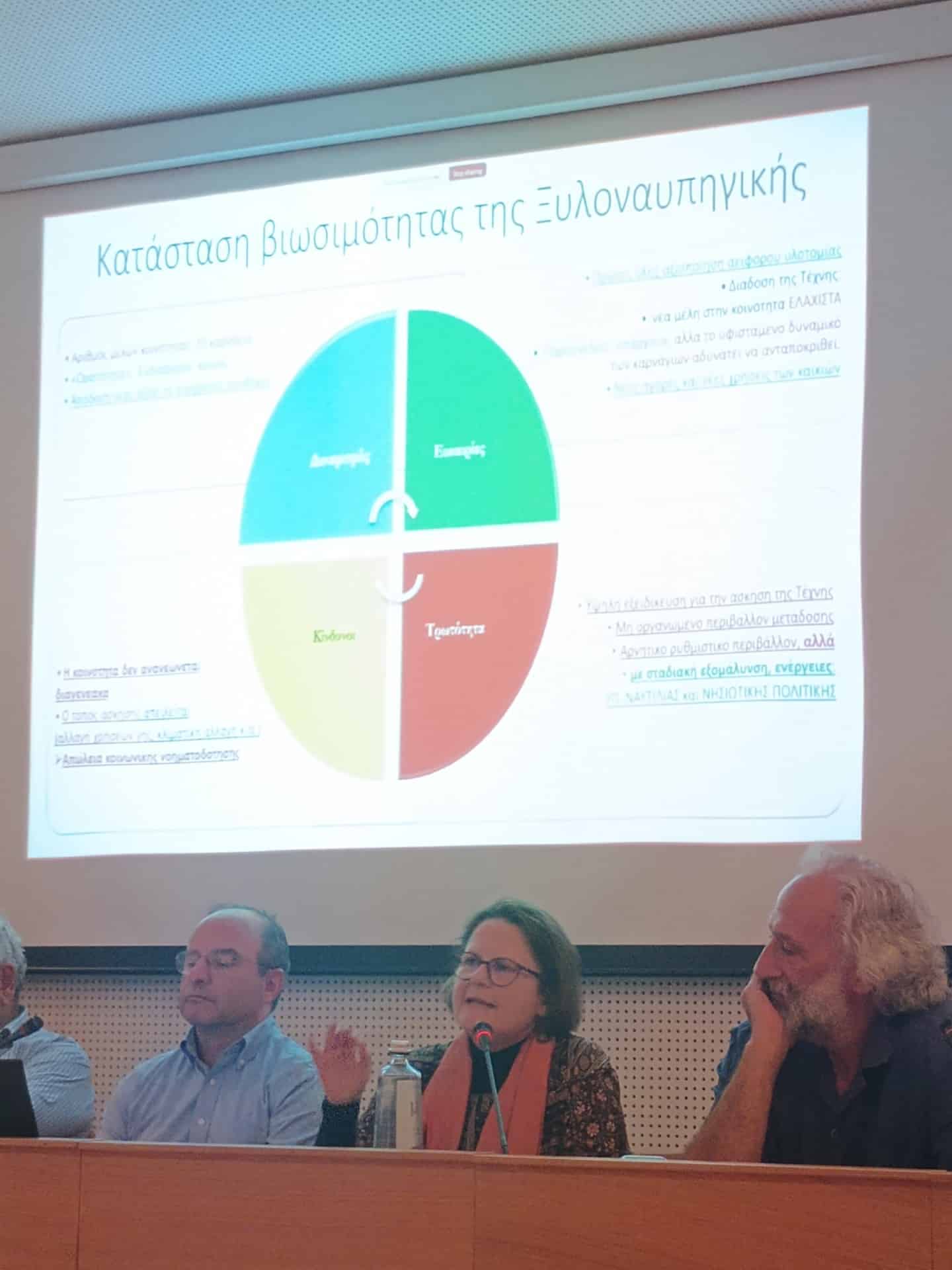 Στις επιμέρους θεματικές ενότητες: «1. Ένα μουσείο για την ξυλοναυπηγική και τα καΐκια», «2. Η προφορική παράδοση για την ξυλοναυπηγική στην ψηφιακή εποχή του Μουσείου», «3. Ξυλοναυπηγική Τέχνη και Μουσείο: δικτύωση και συνέργεια», «4. Ξυλοναυπηγική: από την άτυπη γνώση στην εκπαίδευση» αναπτύχθηκαν εξαιρετικές και μεστές περιεχομένου και ιδεών εισηγήσεις και έγιναν πολύ εποικοδομητικές συζητήσεις. Προέκυψαν πολύ ενδιαφέρουσες προτάσεις για συνεργασίες. Η συμμετοχή ξεπέρασε τα 70 άτομα.